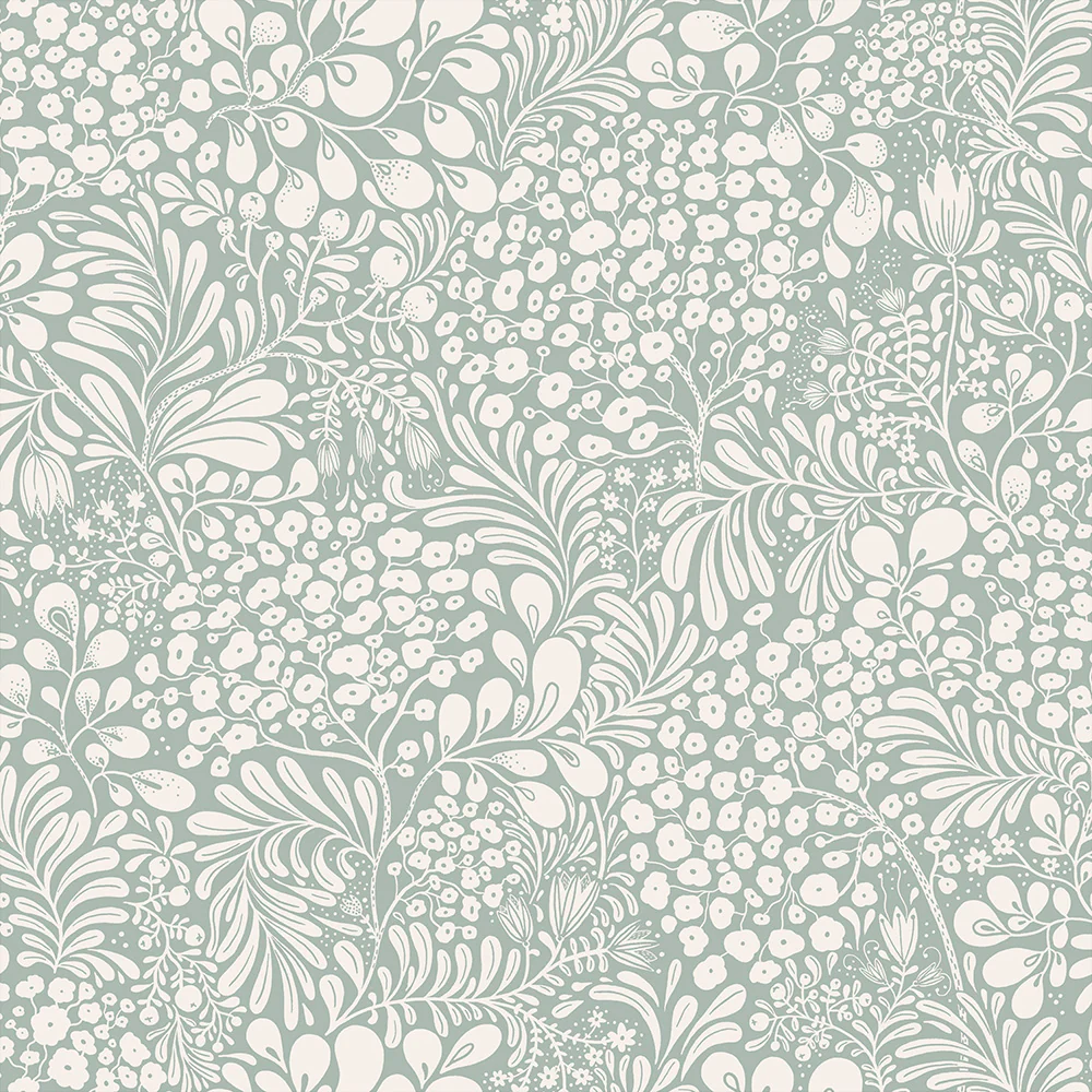 El papel pintado Siv, con su hermoso estampado floral, está disponible en múltiples paletas de colores y fue creado por la diseñadora Lina Schnaufer. Este papel pintado tiene un fondo azul oscuro que se complementa con hermosas flores y hojas en gris. Un papel pintado que queda tan bien en una habitación de bebe o en una casa o departamento.