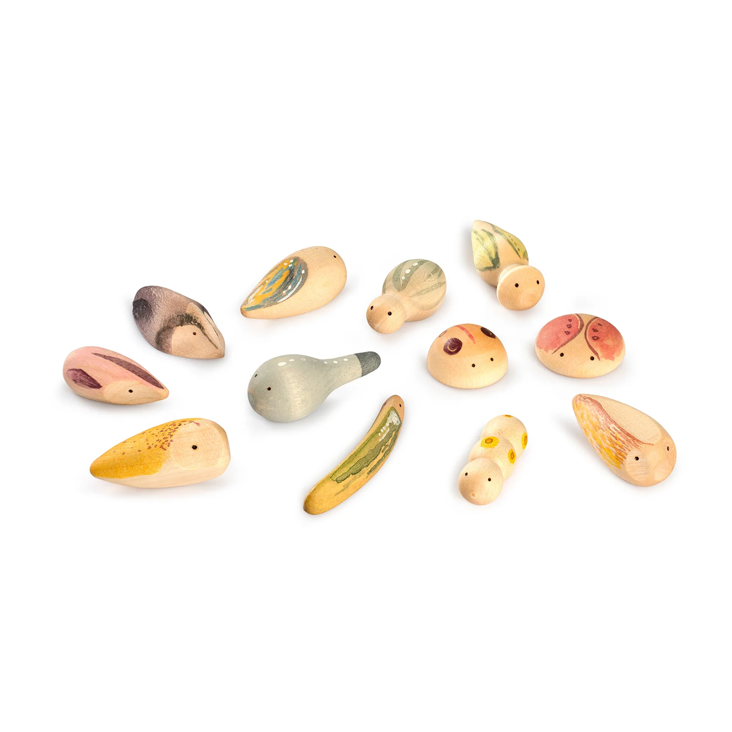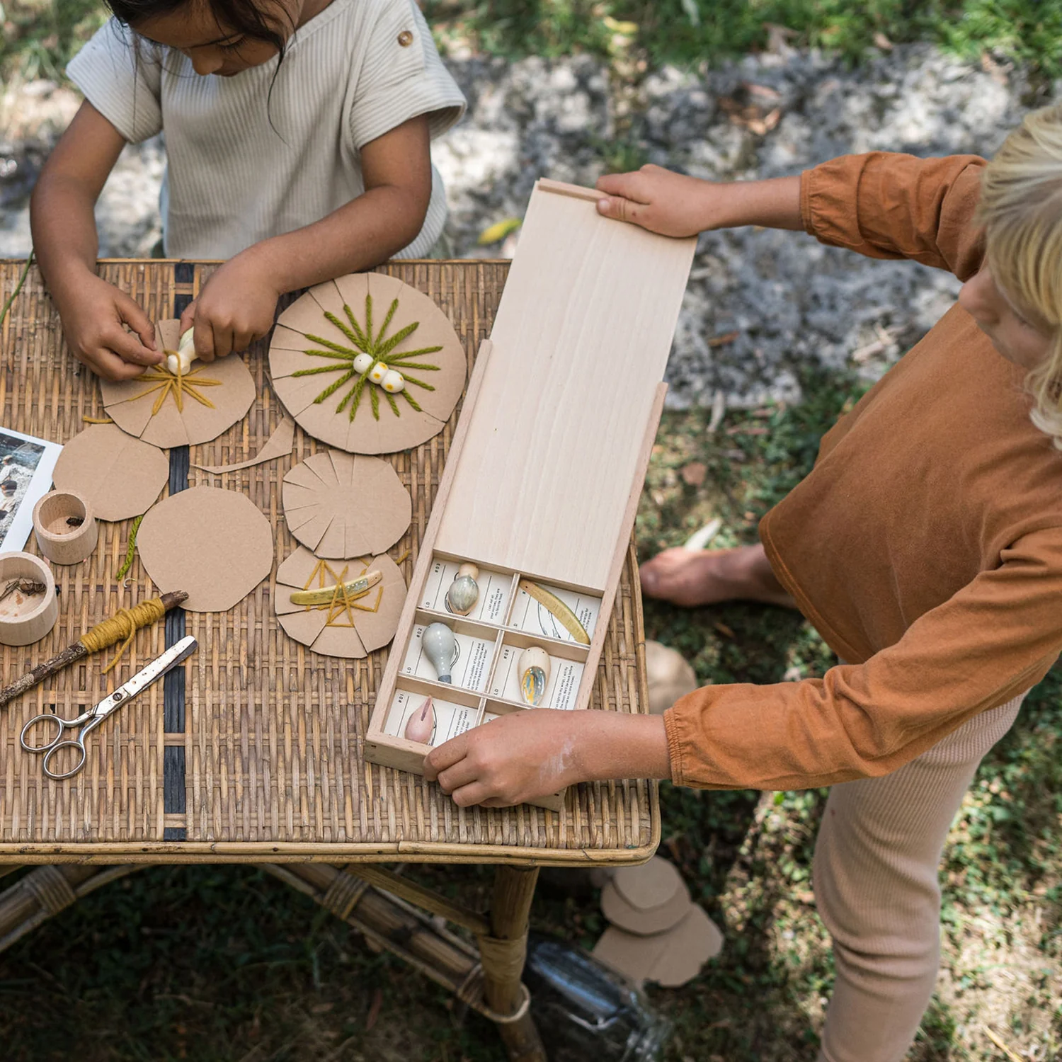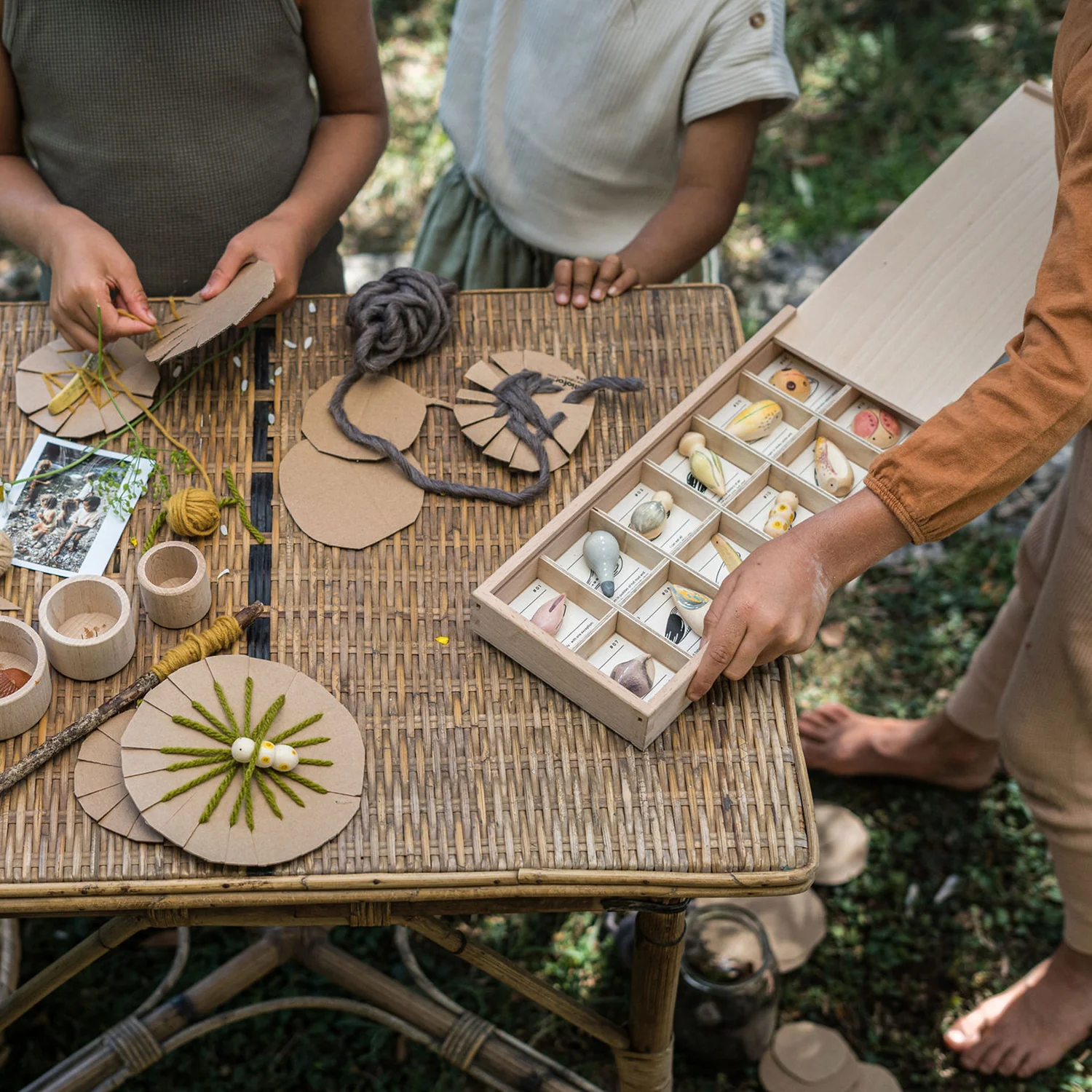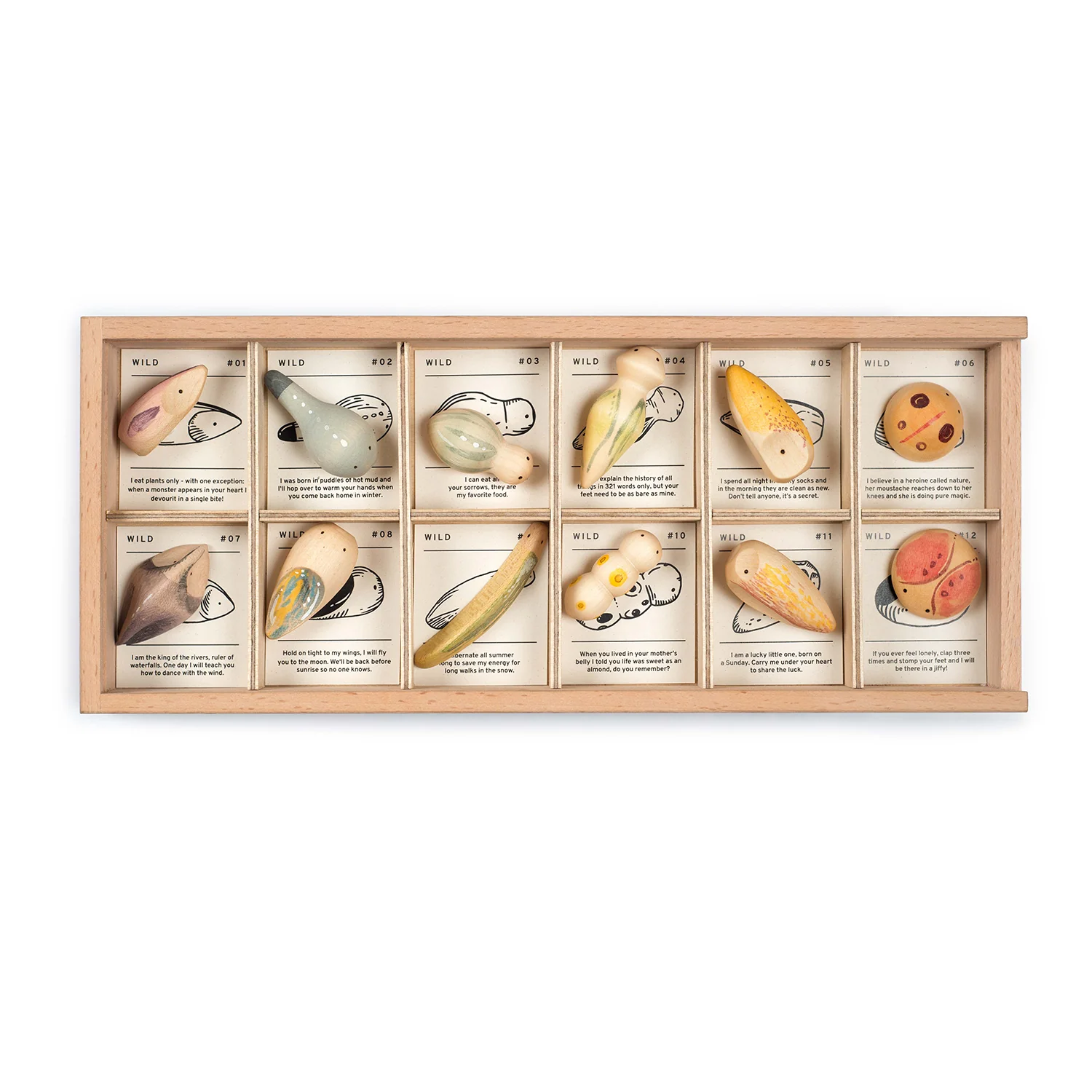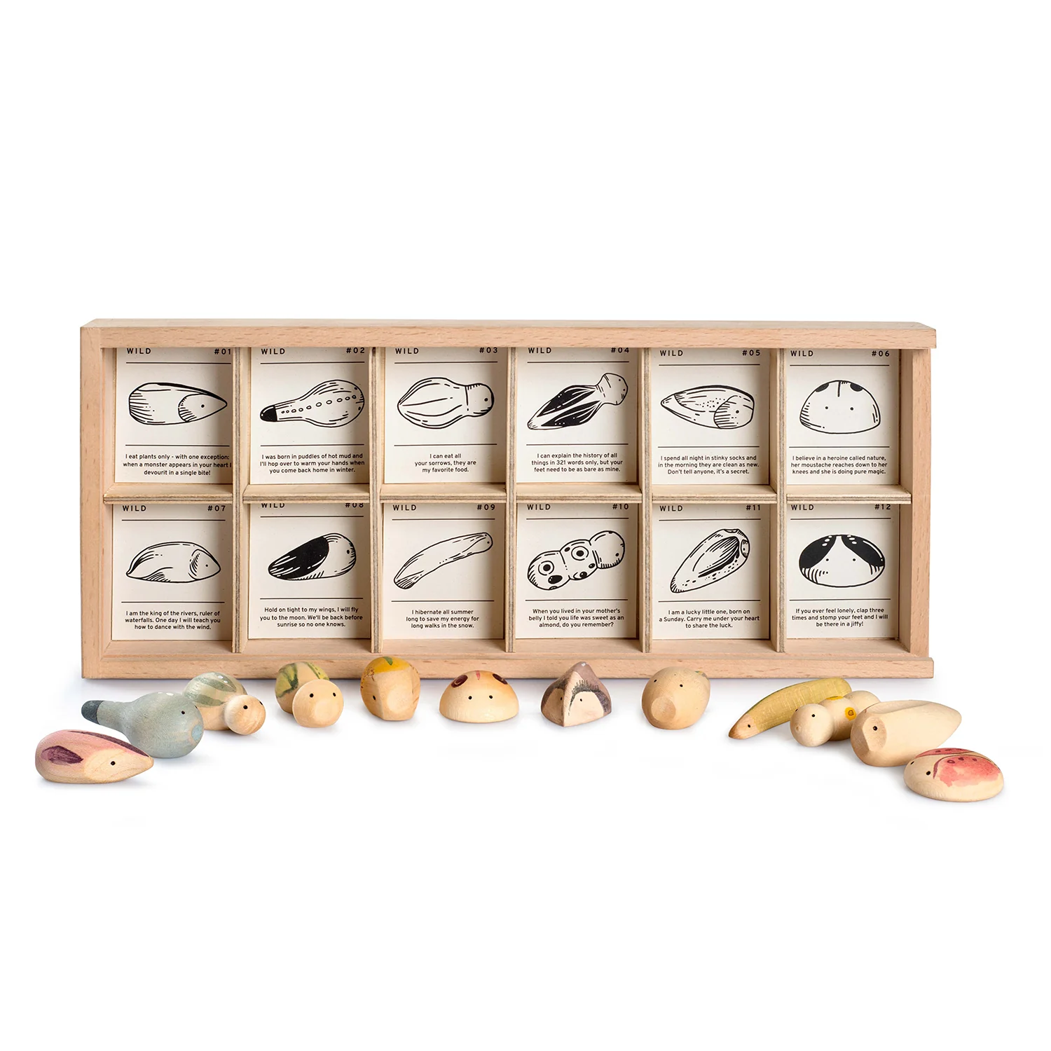 Las criaturas de Wild descansan en una bonita bandeja de clasificación de madera estupenda para almacenamiento y recolección y perfecta para cualquier actividad de juego abierto.