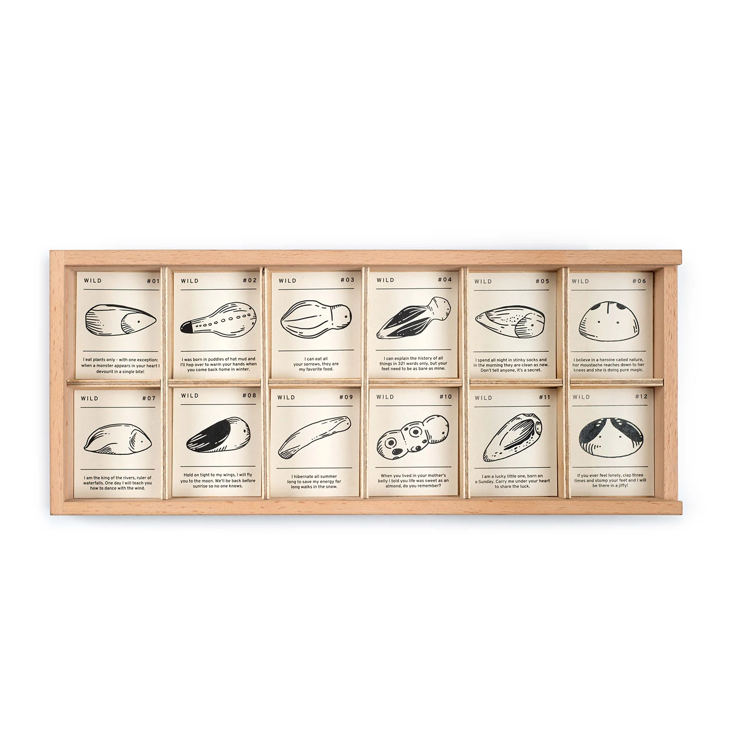 Entre la fantasía y la realidad, Grapat nos regala 12 criaturas mágicas y especiales del reino de la fauna. Cada una tiene un superpoder y propia historia, escrita en una tarjeta como invitación al juego.
