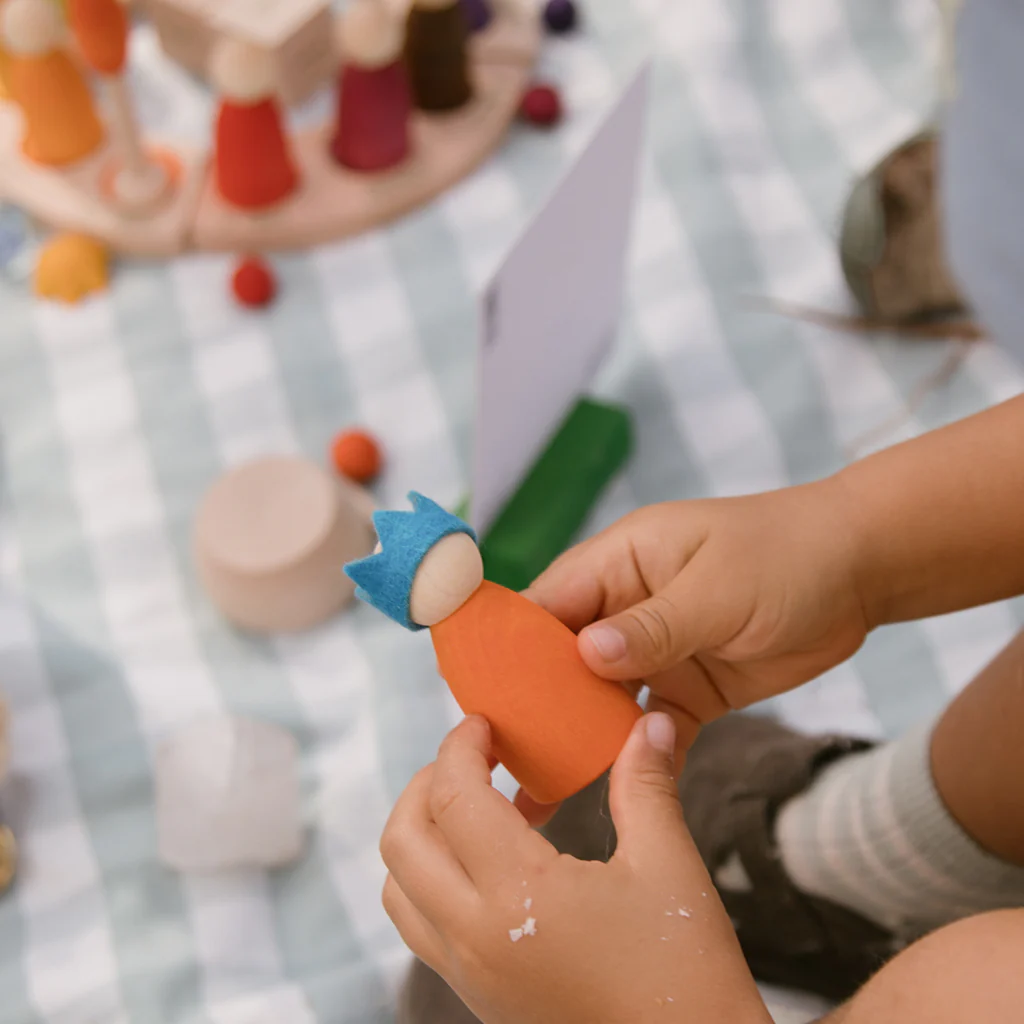 Contiene: 31 piezas / madera y fieltro / diferentes tamaños, formas y colores.