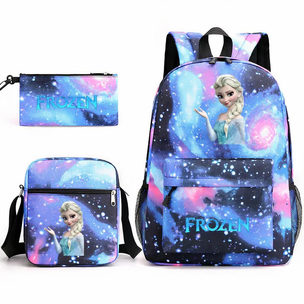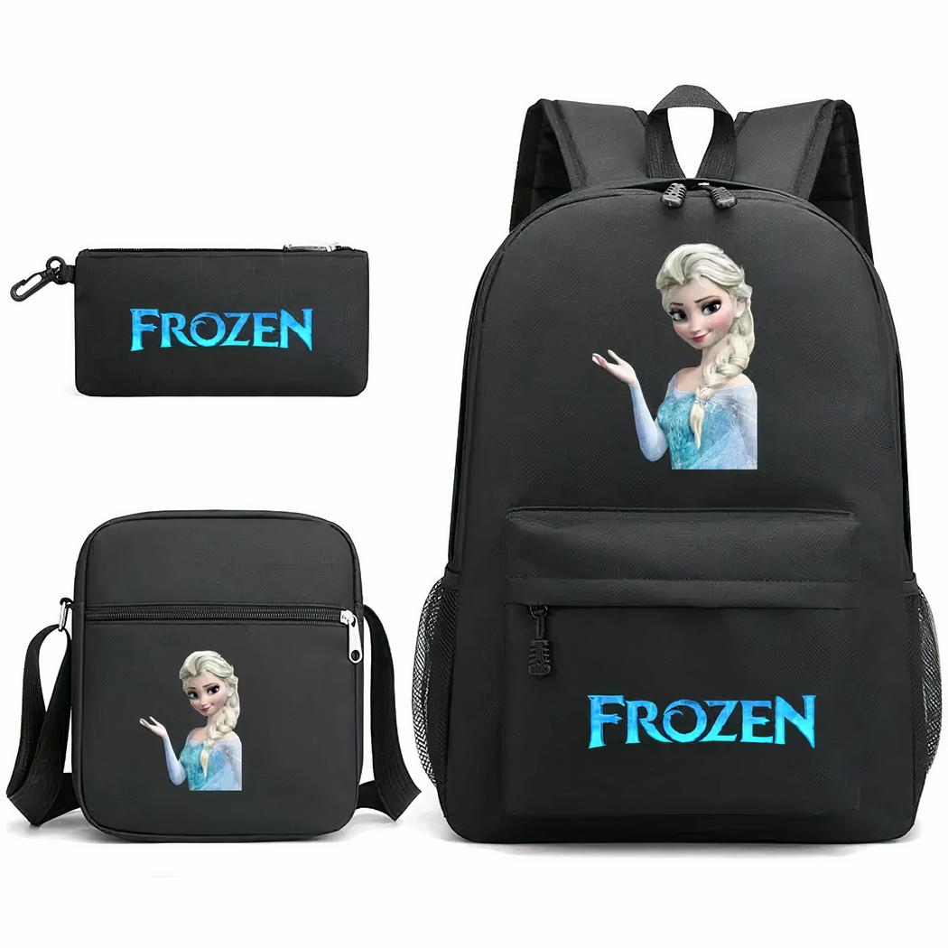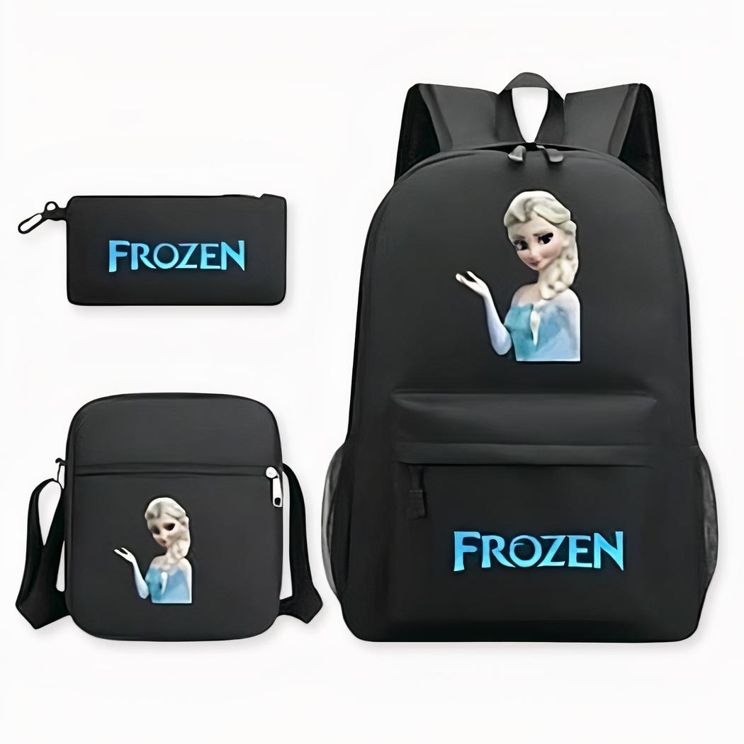 Este conjunto consta de un pequeño estuche para lápices, una bandolera y la pieza principal: la mochila. Disponible en negro, rosa o azul, esta mochila infantil de 3 piezas Frozen es la elección perfecta para los niños con actividades variadas.